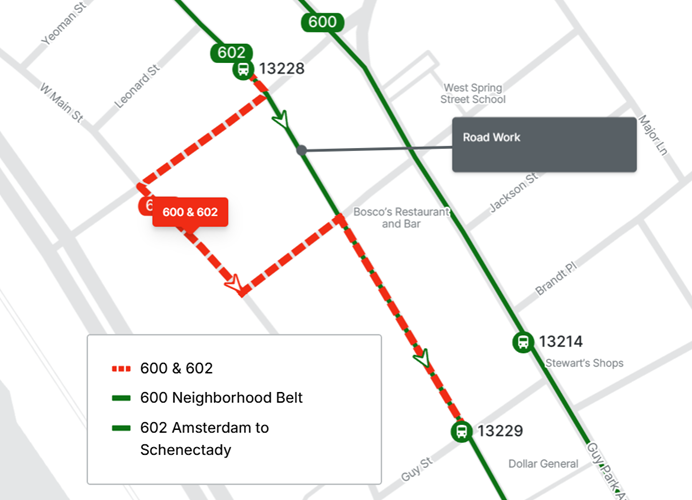 Reroute: From Division St; Right Clinton St,; Left West Main St.; Left Bayard St.; Right Division