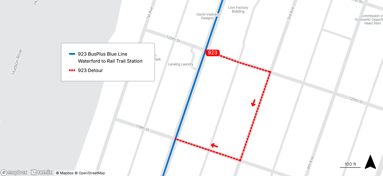 Tuesday, April 14, 2026 Status General Advisory Route(s): 923 Southbound Detour due to Construction Route: 923 Direction: Southbound Reason: Roadwork 2nd avenue Reroute: Left 120th St, Right 3rd Avenue, Right 119th St, Left 2nd Avenue Bus Stop Closed: None