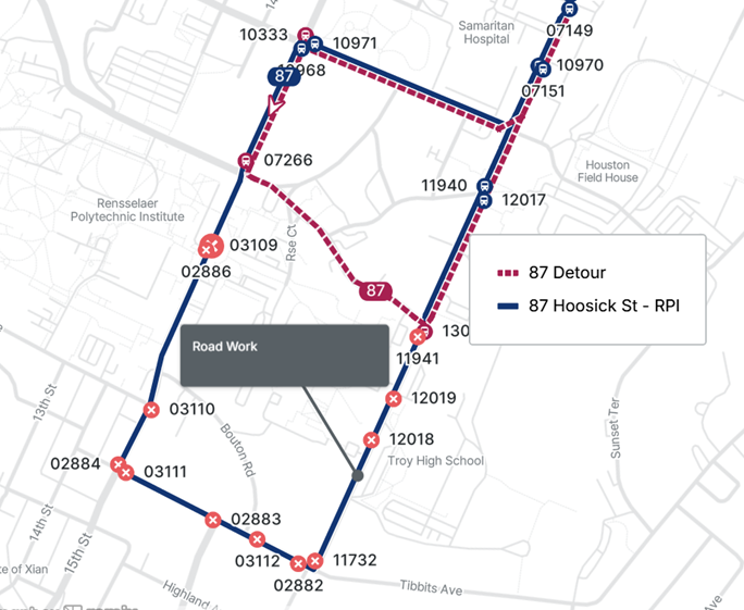 Route(s): 87 Eastbound Detour due to Construction