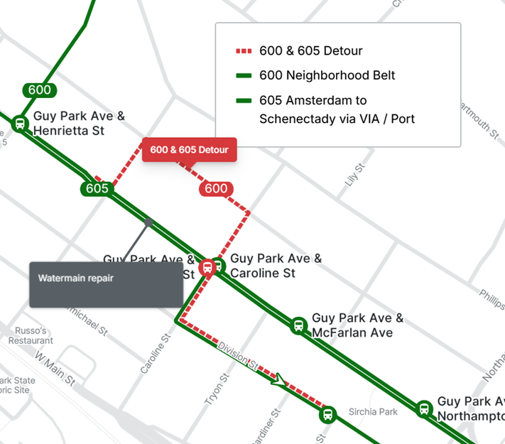 Route(s): 600, 605 Eastbound Detour due to Construction