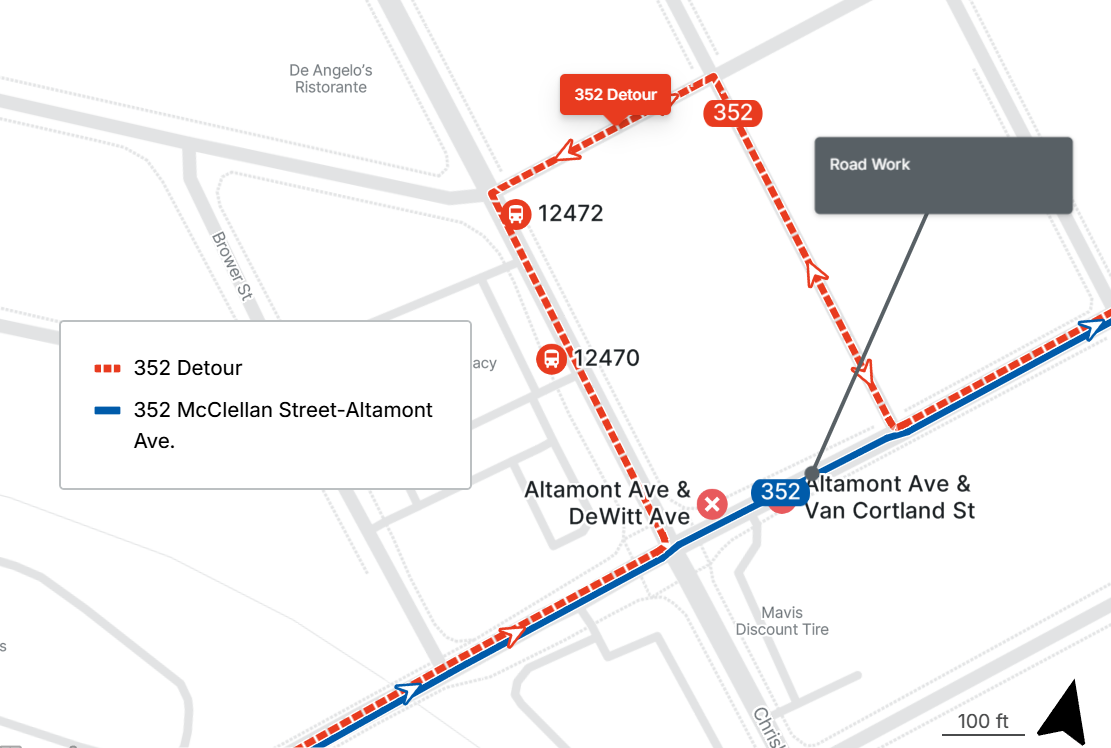 Reroute: Right-Dewitt , Left-Ten Eyck , Left-Chrysler, back to regular route