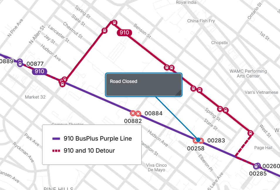 Route(s): 10, 910 Eastbound Detour due to Construction