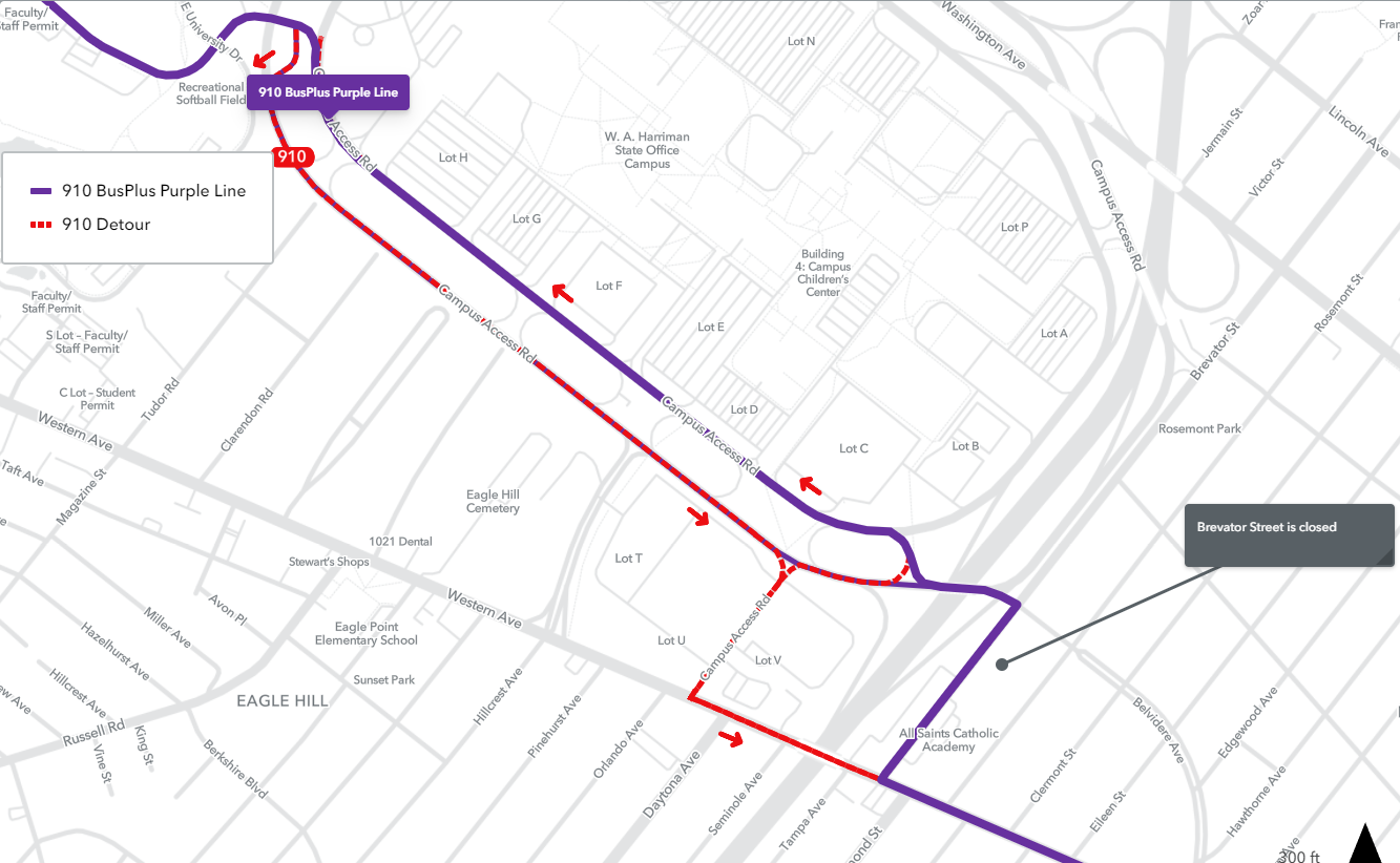 Reroute: Right-Campus Access Road, Left-Western Avenue
